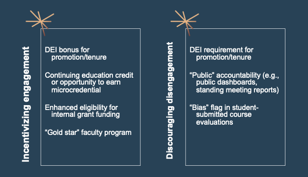 Some institutions have also tried to mitigate barriers by starting with only one or two domains of the Bias Checklist. We have hesitated to support that approach because it can mask the realities of intersectionality and contribute to the silo-ing of these issues; however, we will share more data on this approach when it is available.